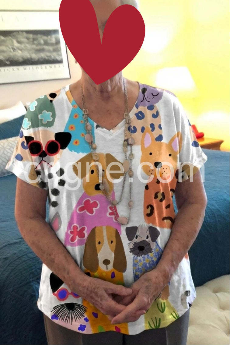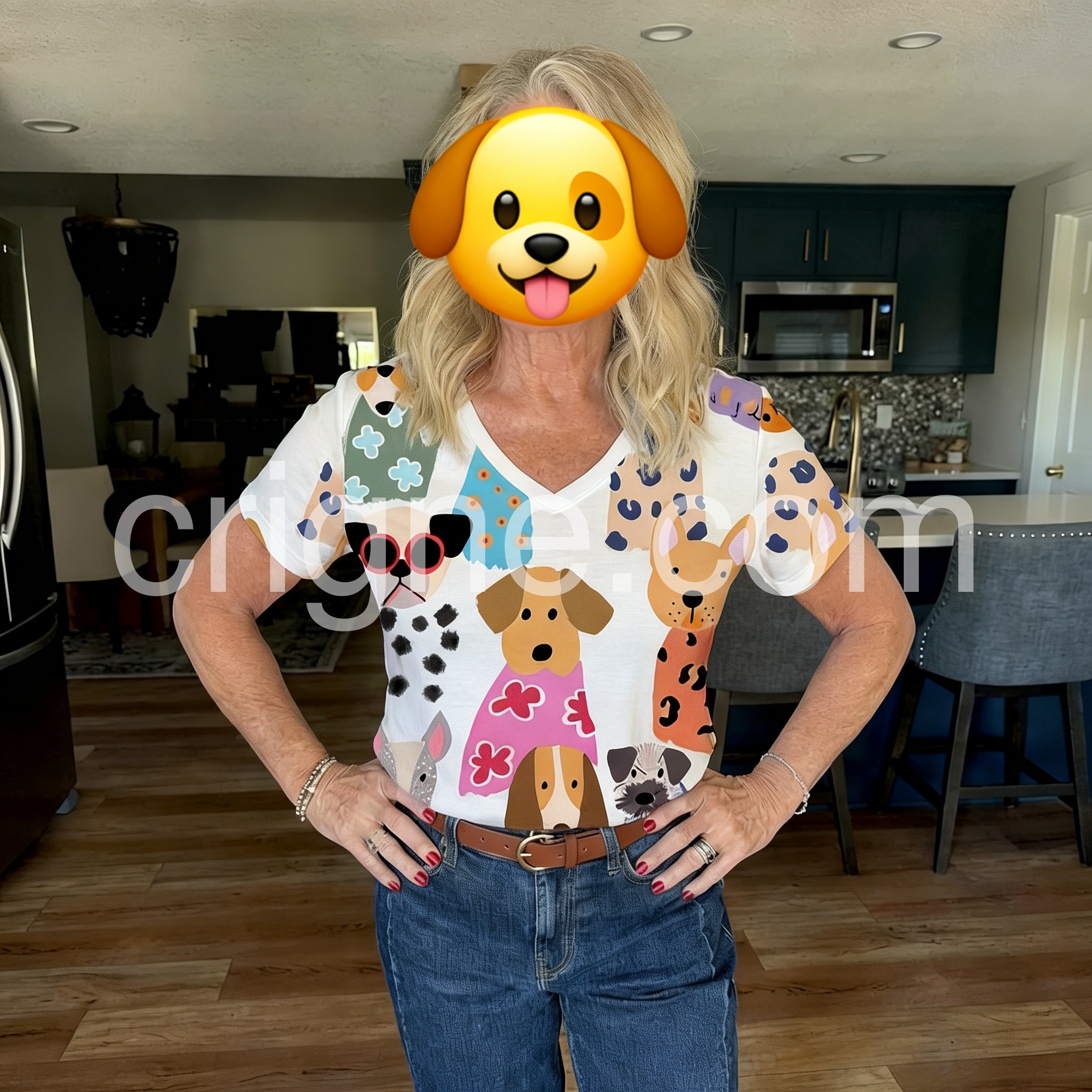 I loved, loved the shirt. The dogs print is well-made and vibrant. Nice loose fit and cute print. Fabric feels great. I will wash cold water, delicate cycle and select the “air dry” option on the dryer for a few minutes, then hang to dry the rest of the way.