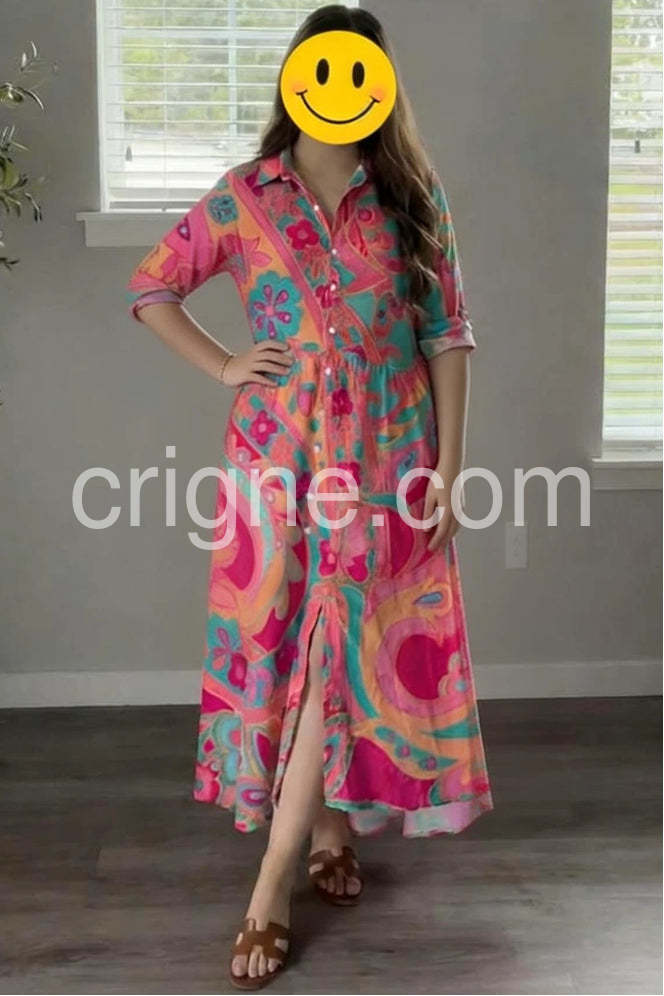 I love the sleeve length on this dress. It gives a bit of arm coverage without making you too hot, thanks to the breathable fabric. The maxi length is elegant, and the high-low effect created by leaving a few bottom buttons undone makes it very stylish and easy to walk in.