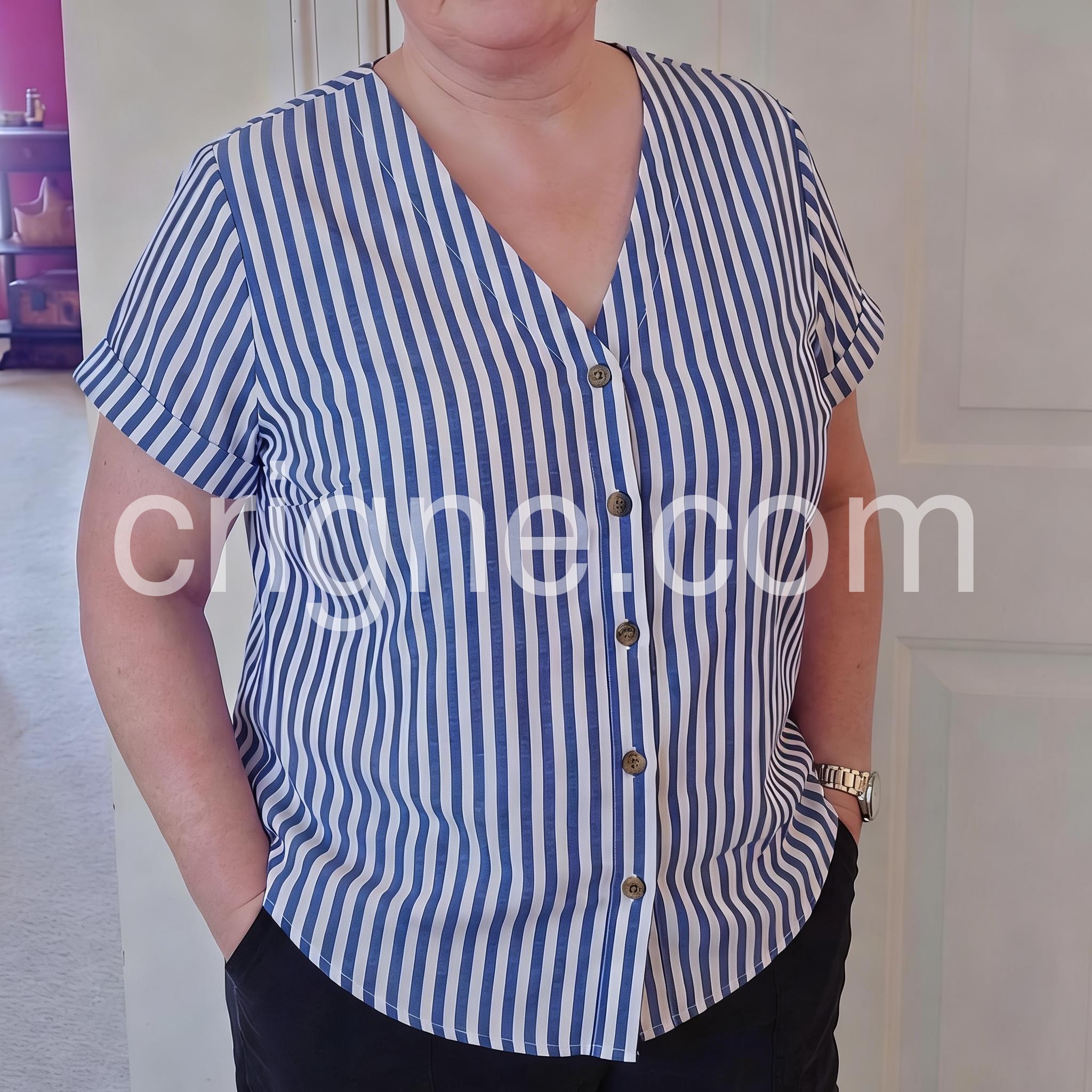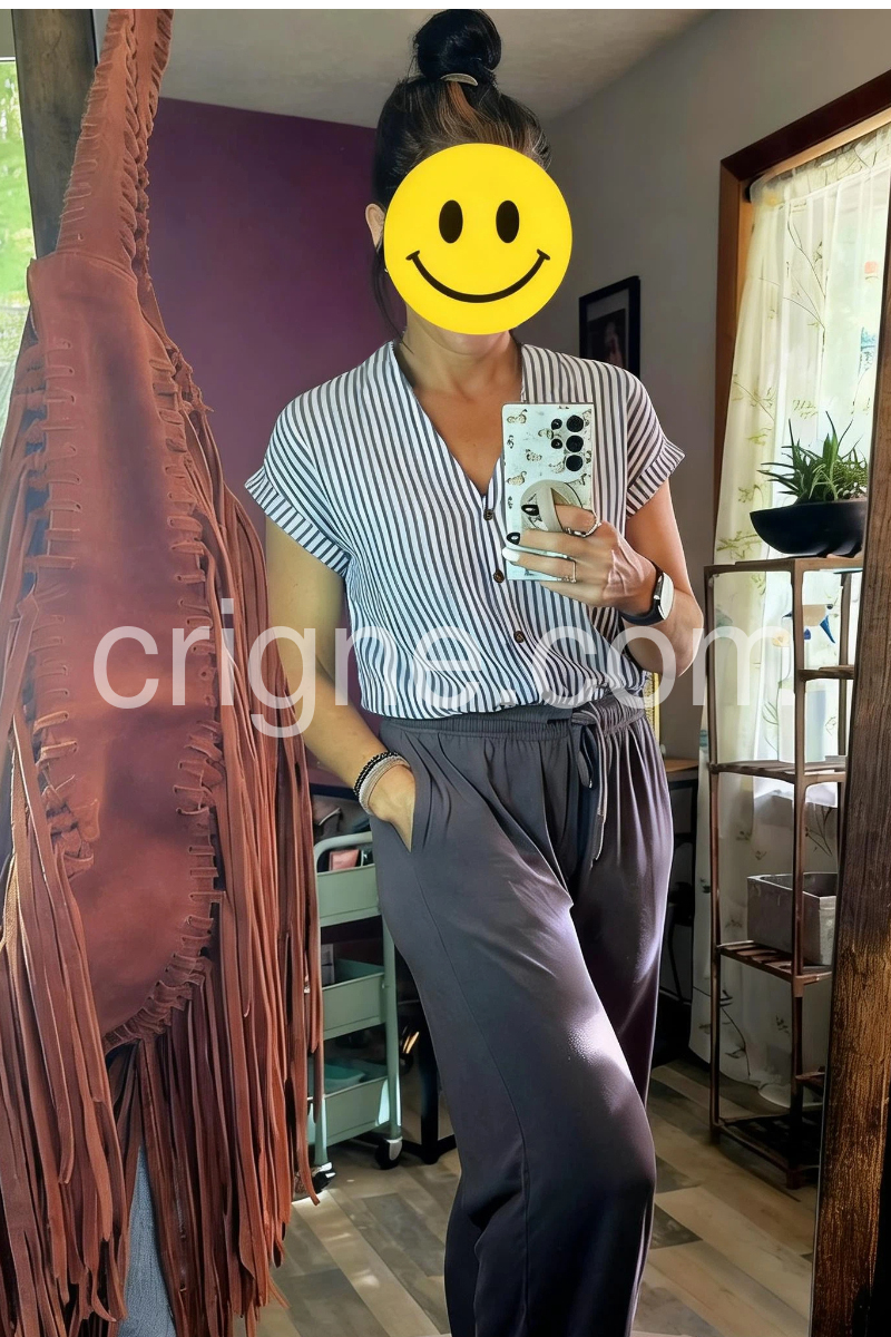 This blouse is perfect for my vacation to Florida. It kept me cool all day and looked great in photos. The vertical stripes really do make you look taller and slimmer. If you are on the fence, just buy it!