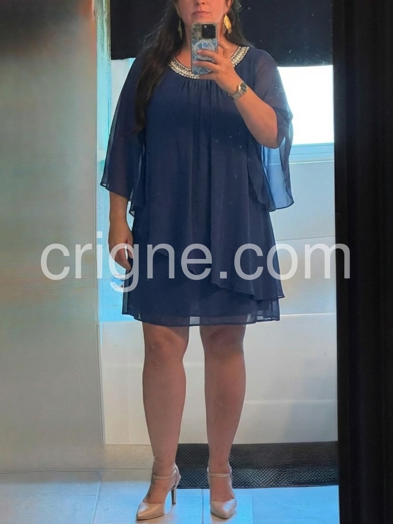 As a plus-size woman, I always worry about buying dresses online, but this one exceeded my expectations. The A-line cut and draped chiffon cover all my problem areas. It makes me feel beautiful and confident.