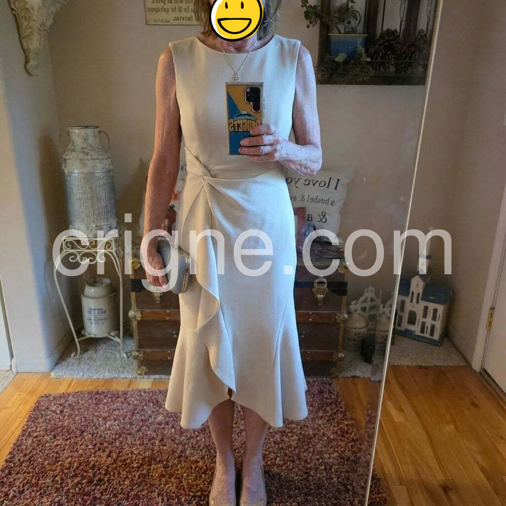 I wore this light beige dress to a spring gala and was blown away by how chic and versatile it looks. The sleeveless cut is sleek, and the waist-tie detail creates a flattering silhouette that smooths at the waist without feeling constrictive. The skirt's subtle ruffle adds just the right amount of movement, making it perfect for photos and dancing alike. I paired it with the gray clutch from the photo and delicate gold jewelry, which completed a refined, put-together look. Fabric felt smooth and breathable, and the midi length was elegant without being fussy, so I could move comfortably all evening.