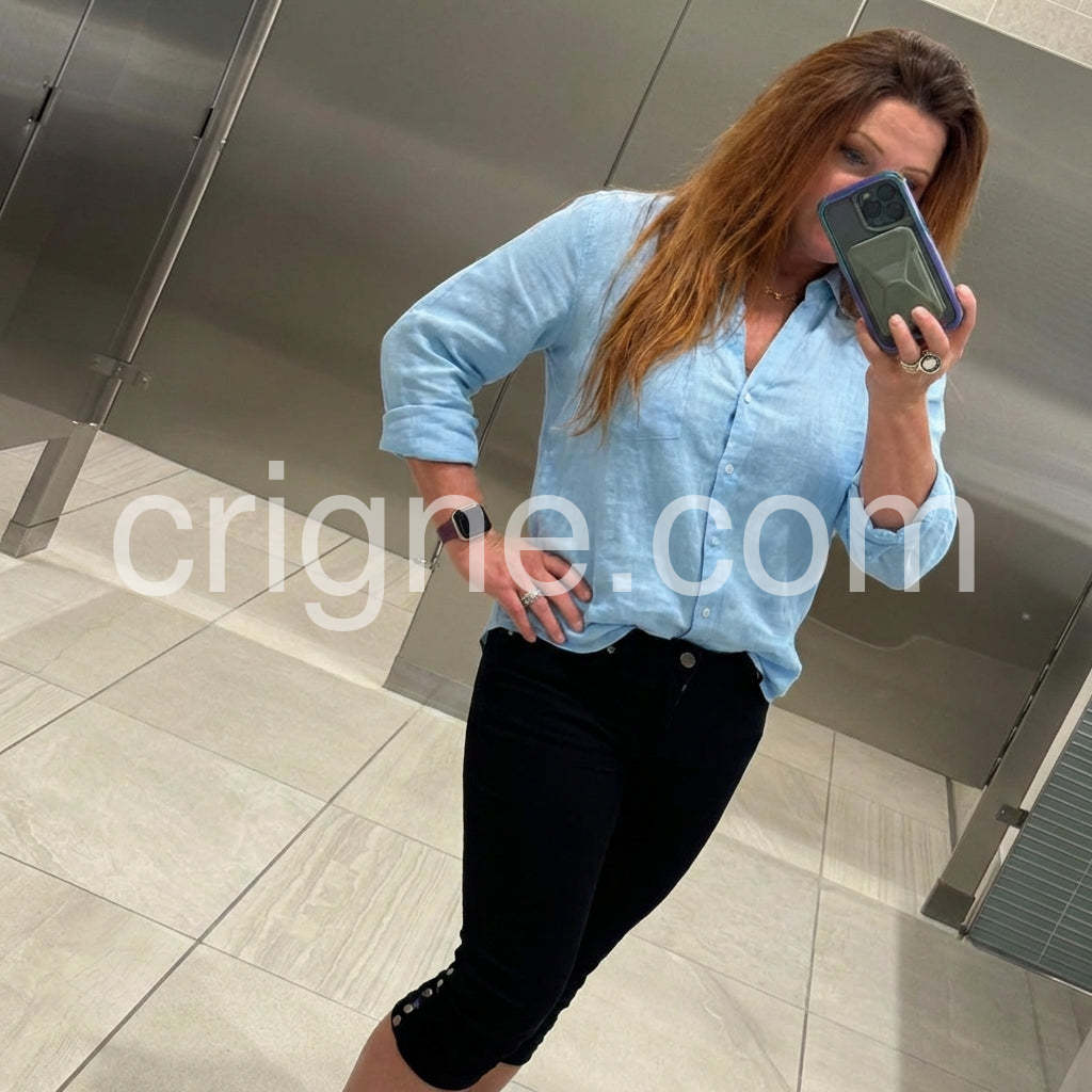 This button-down is incredibly flattering. It is loose enough to hide my tummy area but still looks stylish and put together. The baby blue is gorgeous.