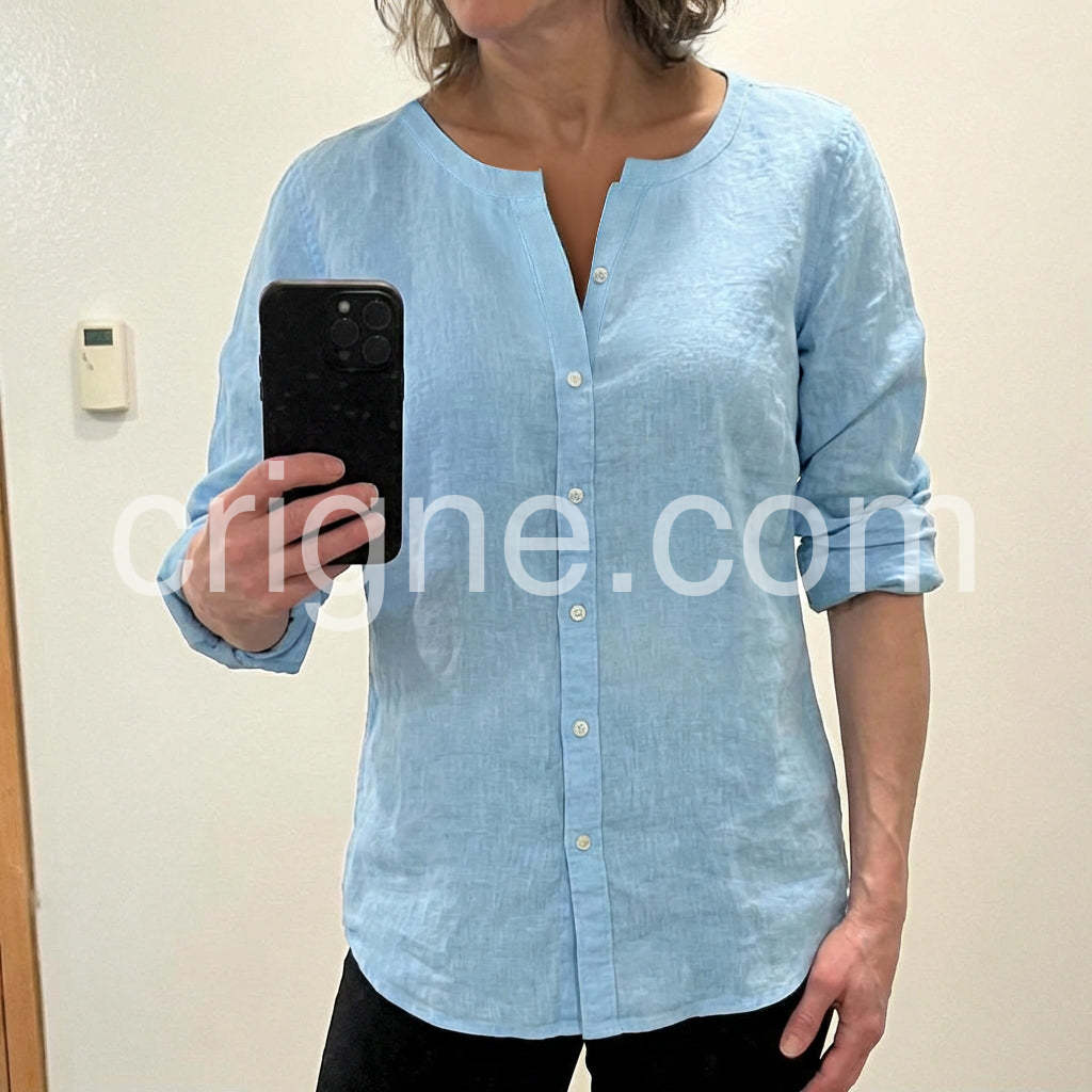 I love that you can roll the sleeves up for a casual look. It is lightweight, non-see-through, and super flattering. Highly recommend!