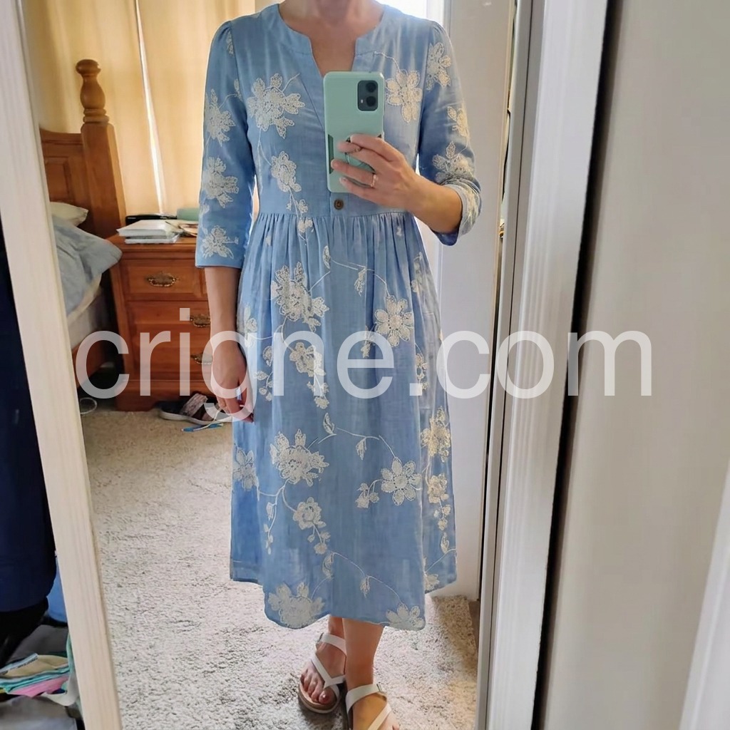 Wore this on my beach vacation and received so many compliments! The 3/4 sleeves are great for cooler evenings, and the waistline is very forgiving. Highly recommend!