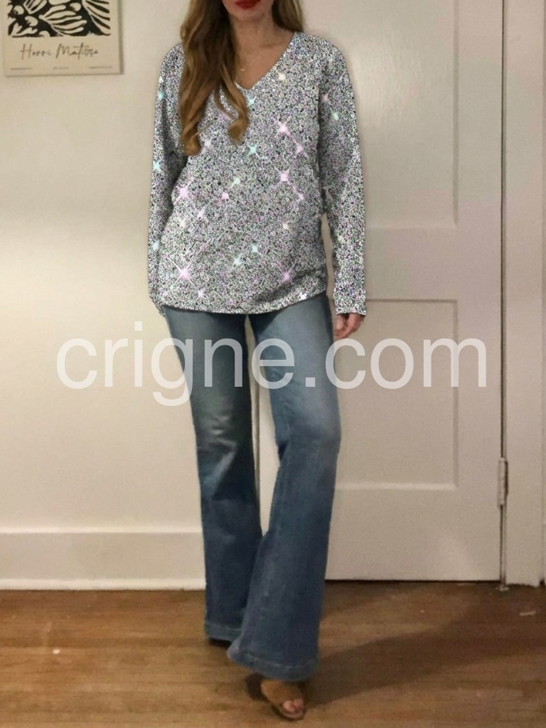 Very beautiful and comfy. The cut of the v-neck is perfect. It fits a necklace very nicely. It doesn’t plunge and it’s not too high. Just right.