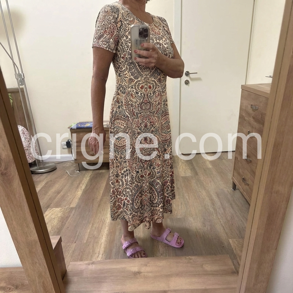 This dress is very cute and figure forgiving.It is cool, comfortable and it has pockets.it doesn’t wrinkle when packed