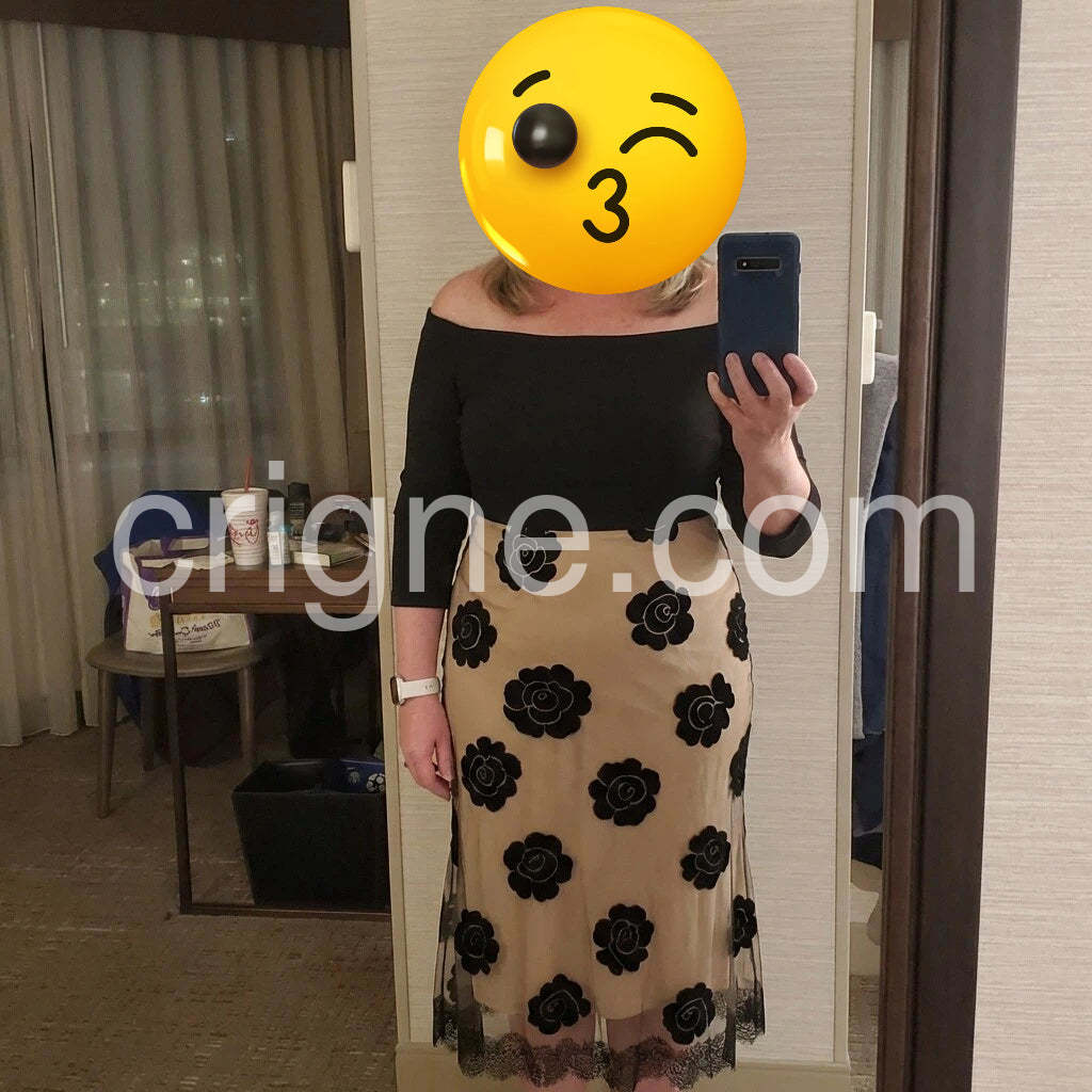 Absolutely stunning dress! I wore this to a work gala and received so many compliments. The fit is true to size and the black floral detailing on the skirt makes it look incredibly high-end. Highly recommend!