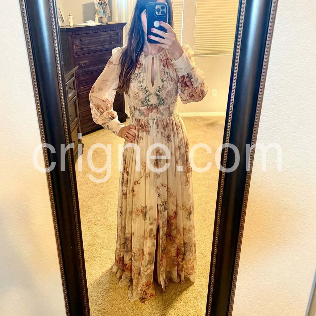 Such a beautiful dress for autumn photoshoots. The long sleeves are great for cooler weather, but the fabric is breathable. The fit is incredibly flattering.