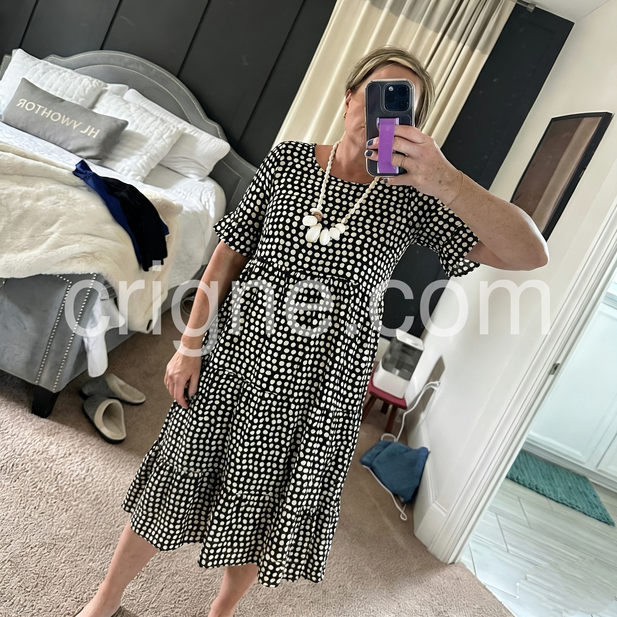 This is my new go-to dress for church and Sunday brunch. It is modest, elegant, and the black and white polka dots never go out of style. Highly recommend!