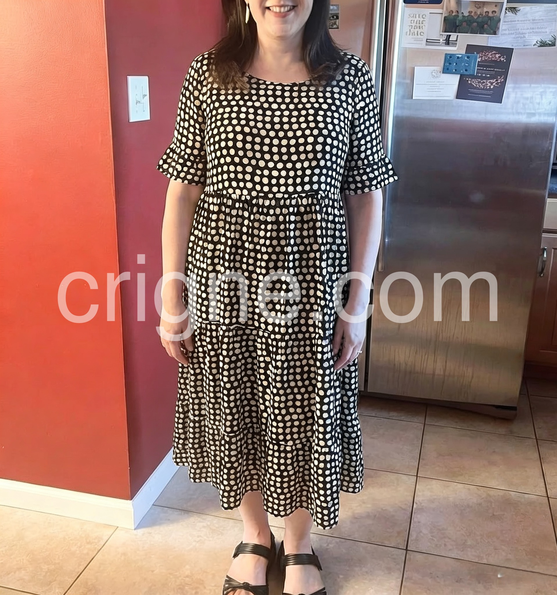 I was worried the tiers would make me look bulky, but it actually falls really nicely. The black and white contrast is sharp and the dress is very well made.