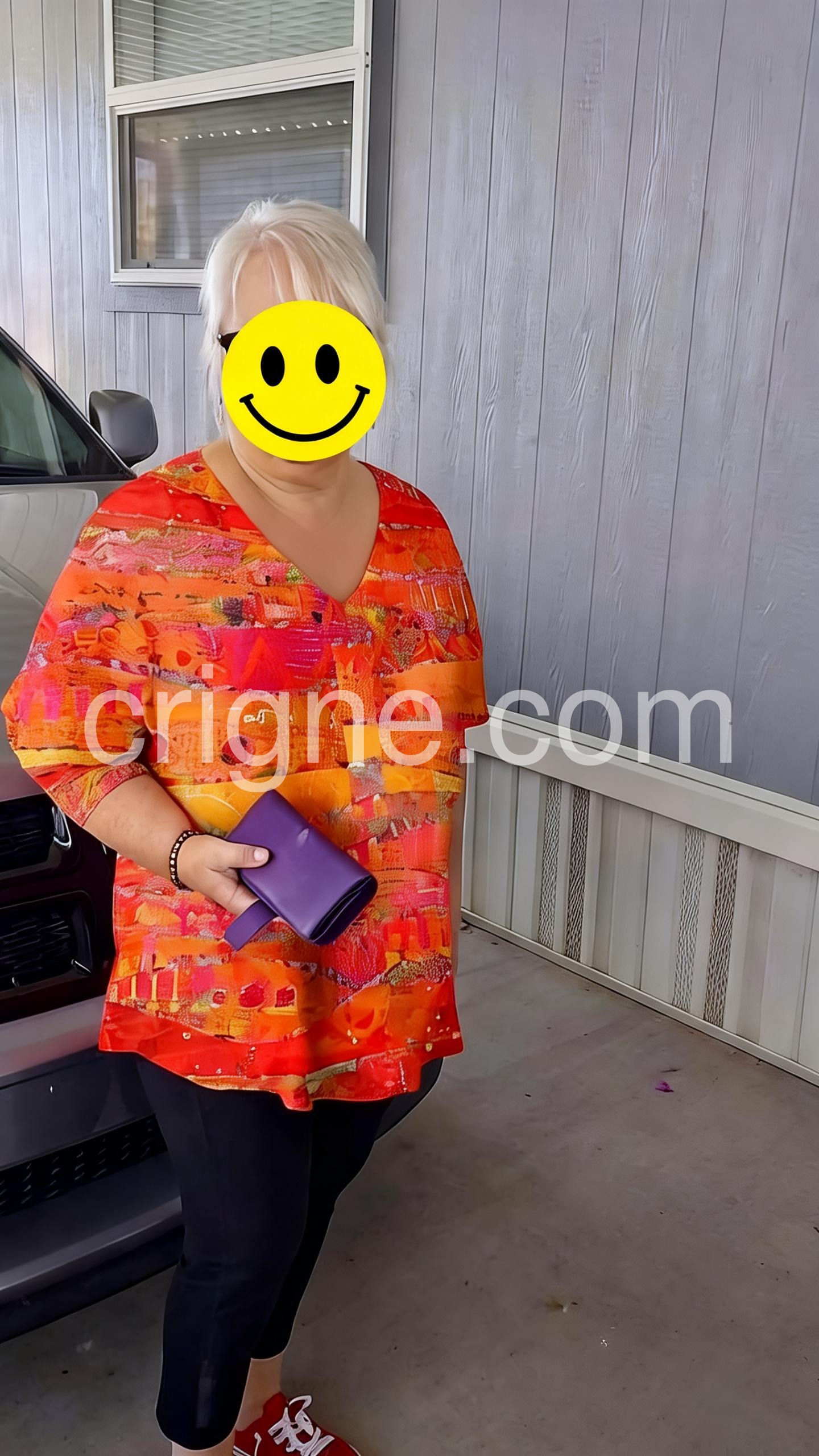 As a curvy woman I find this top incredibly flattering. It hides my tummy and the warm colors brighten up my complexion.