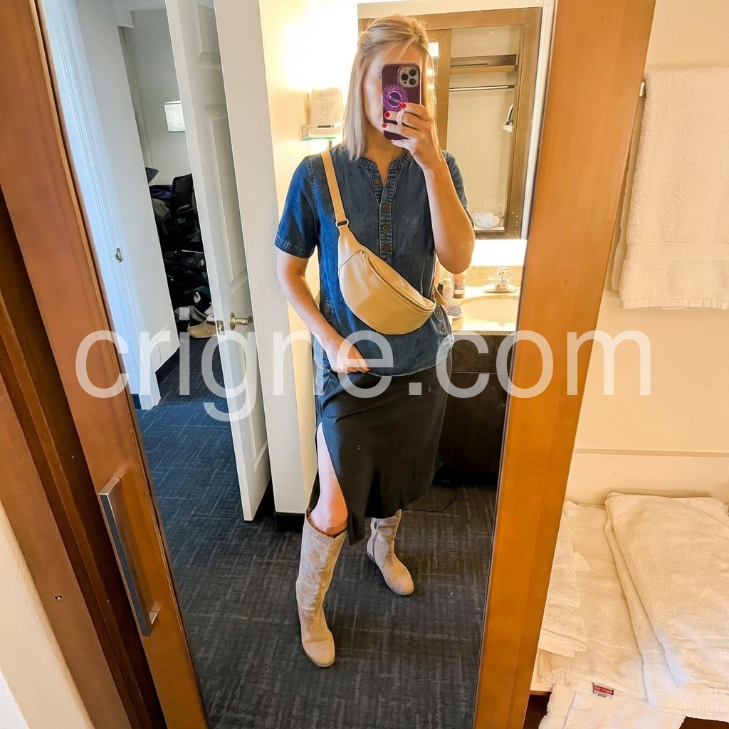 This is my new favorite weekend shirt. It is so easy to throw on and instantly look put together. It did not wrinkle much in my suitcase either, which makes it perfect for travel. The faux denim style is very trendy right now.