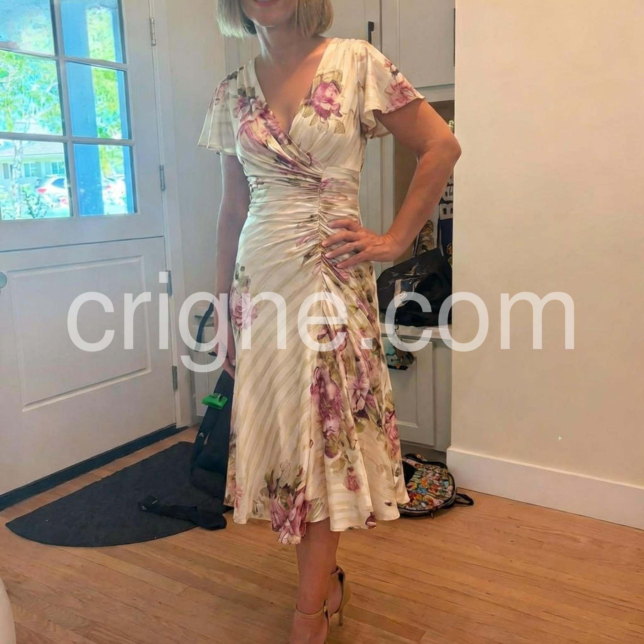 This is a very Beautiful, Comfortable and Stylish dress. The flutter sleeves and floral make the dress look retro and classic. Great style and fabric! Love the length of this dress. Such a nice spring/summer dress! I will get this dress to wear for Easter dinner and I love the look and feel of this dress!