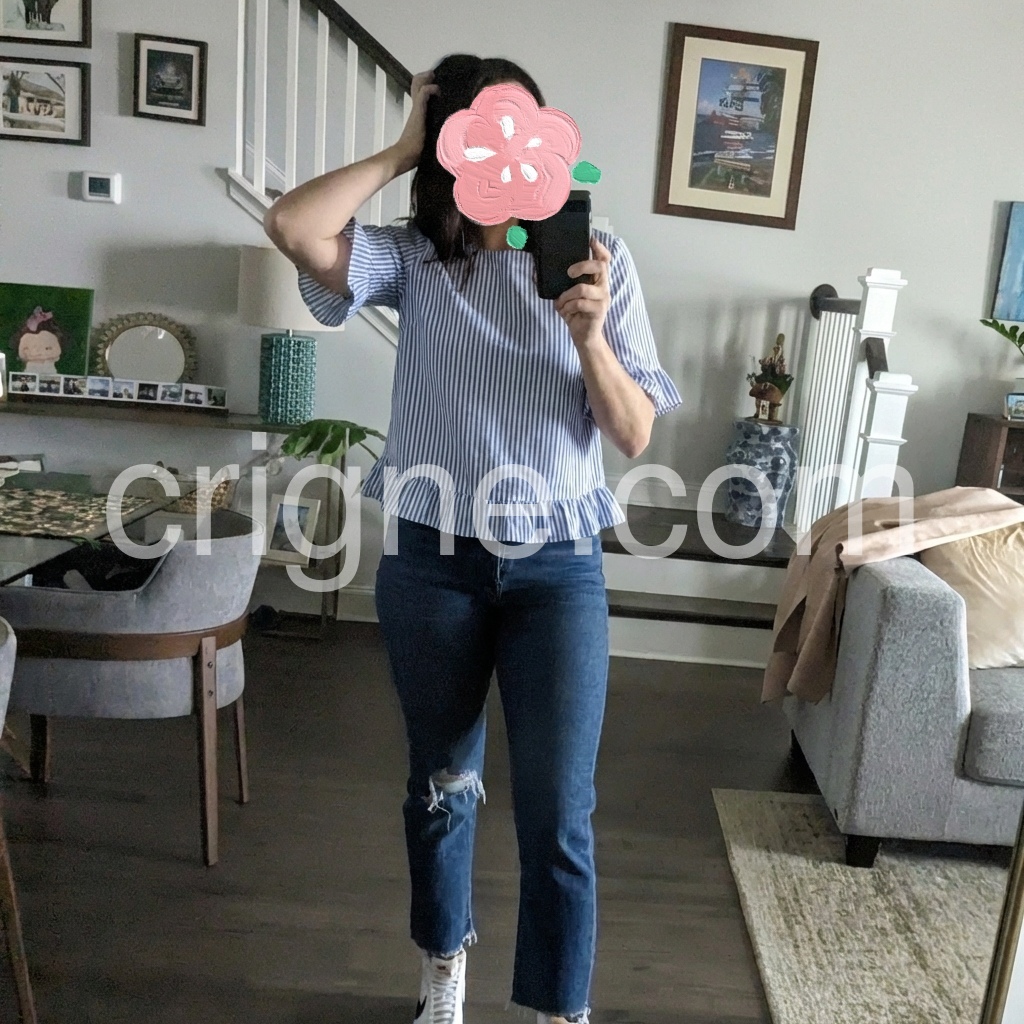 I absolutely love this striped blouse! The ruffle details on the sleeves and bottom give it such a cute, feminine touch. It fits perfectly and is incredibly comfortable for hot summer days.