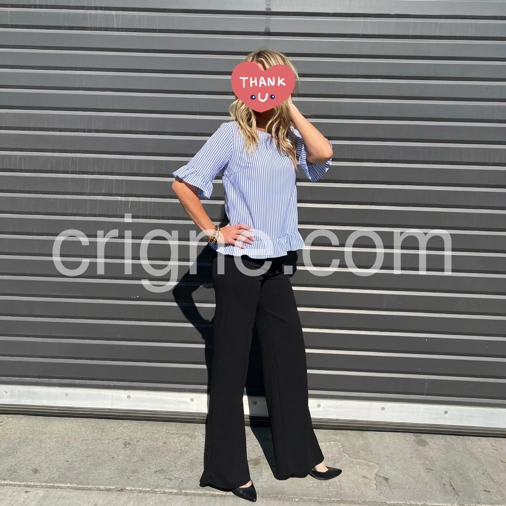 The vertical stripes are so slimming! I was worried the ruffles might add bulk, but it flows beautifully. Very happy with this purchase, it is my new go-to top for casual outings.