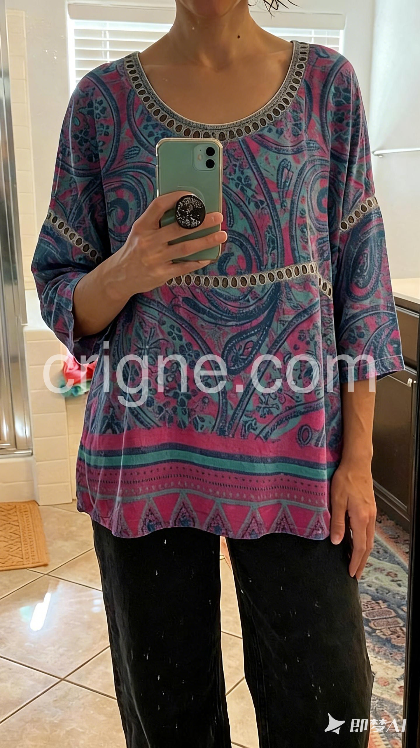 Absolutely love the vibrant colors and the boho vibe of this top! It pairs perfectly with my favorite distressed jeans. The fit is wonderfully relaxed without looking sloppy.