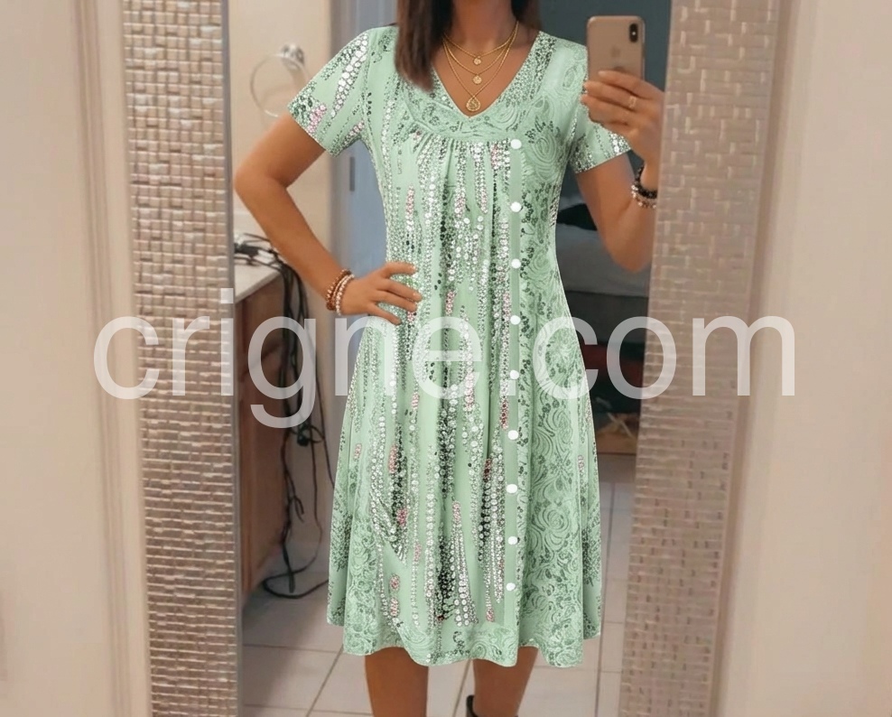 Absolutely love this dress! The light green color is perfect for spring and summer. The material is so soft and flowy, making it incredibly comfortable to wear all day. The v-neck is flattering without being too revealing. Highly recommend!