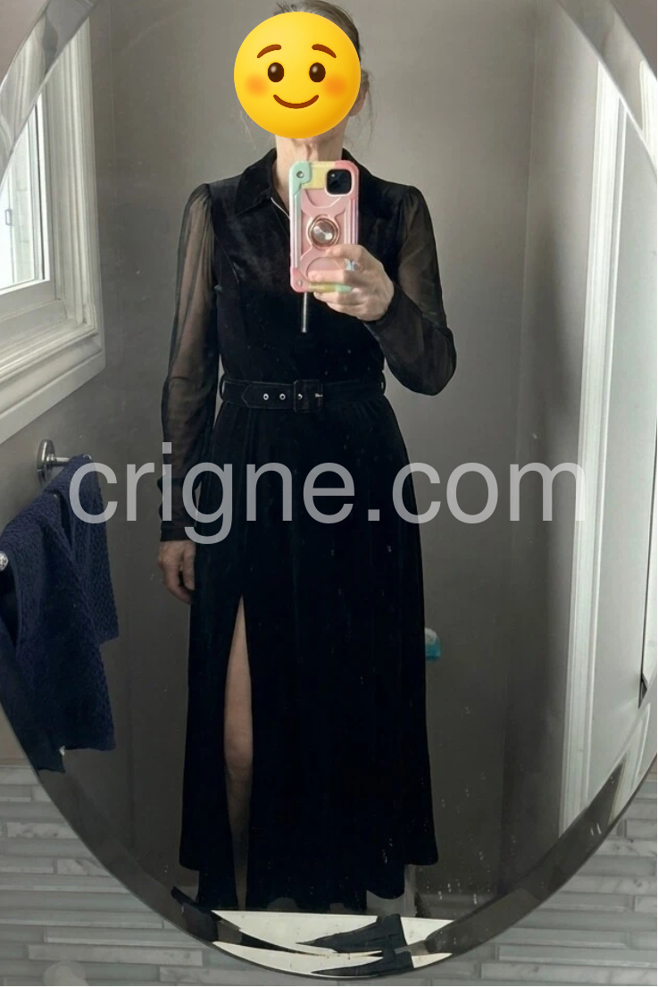 This is a beautiful black maxi dress. The zip neckline and the waist belt create such a flattering shape, and the length is perfect with boots. It feels comfortable while still looking very polished and elegant. I wore it on a cruise and got compliments right away.