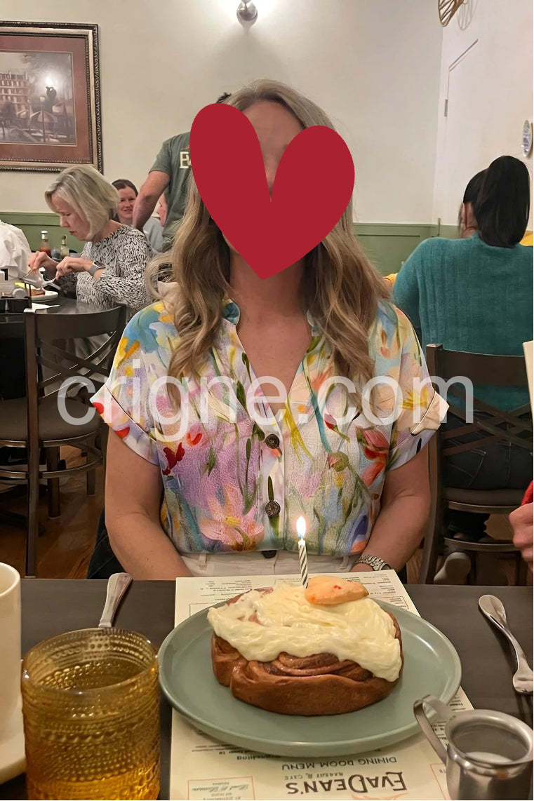 This blouse is absolutely gorgeous! The floral print looks like a watercolor painting, and the pastel colors are so vibrant and perfect for spring. I wore it to a garden party and received so many compliments.